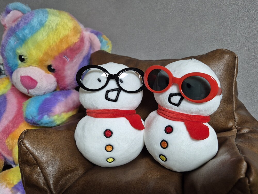 모자, 안경, 목도리 등을 입혀줘.