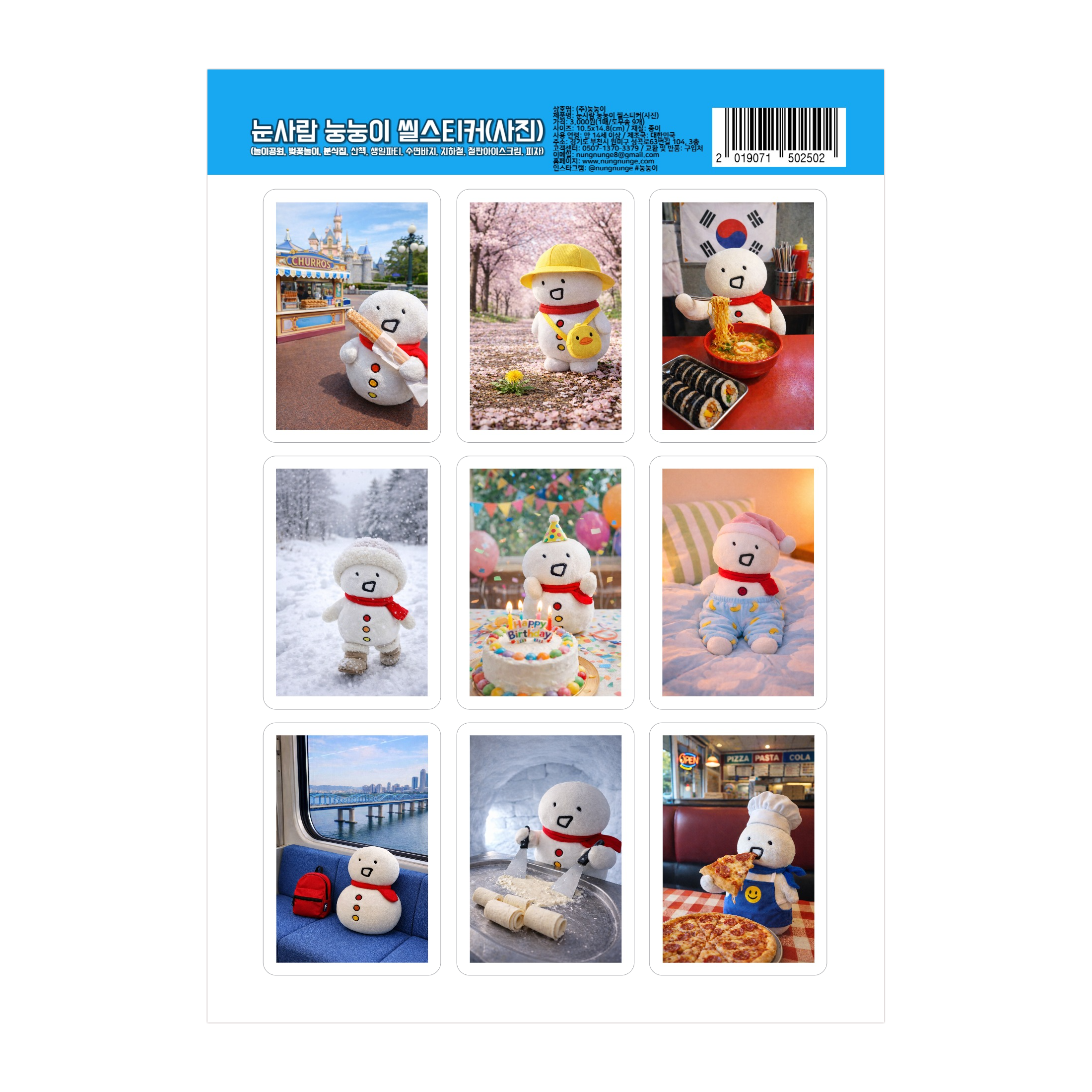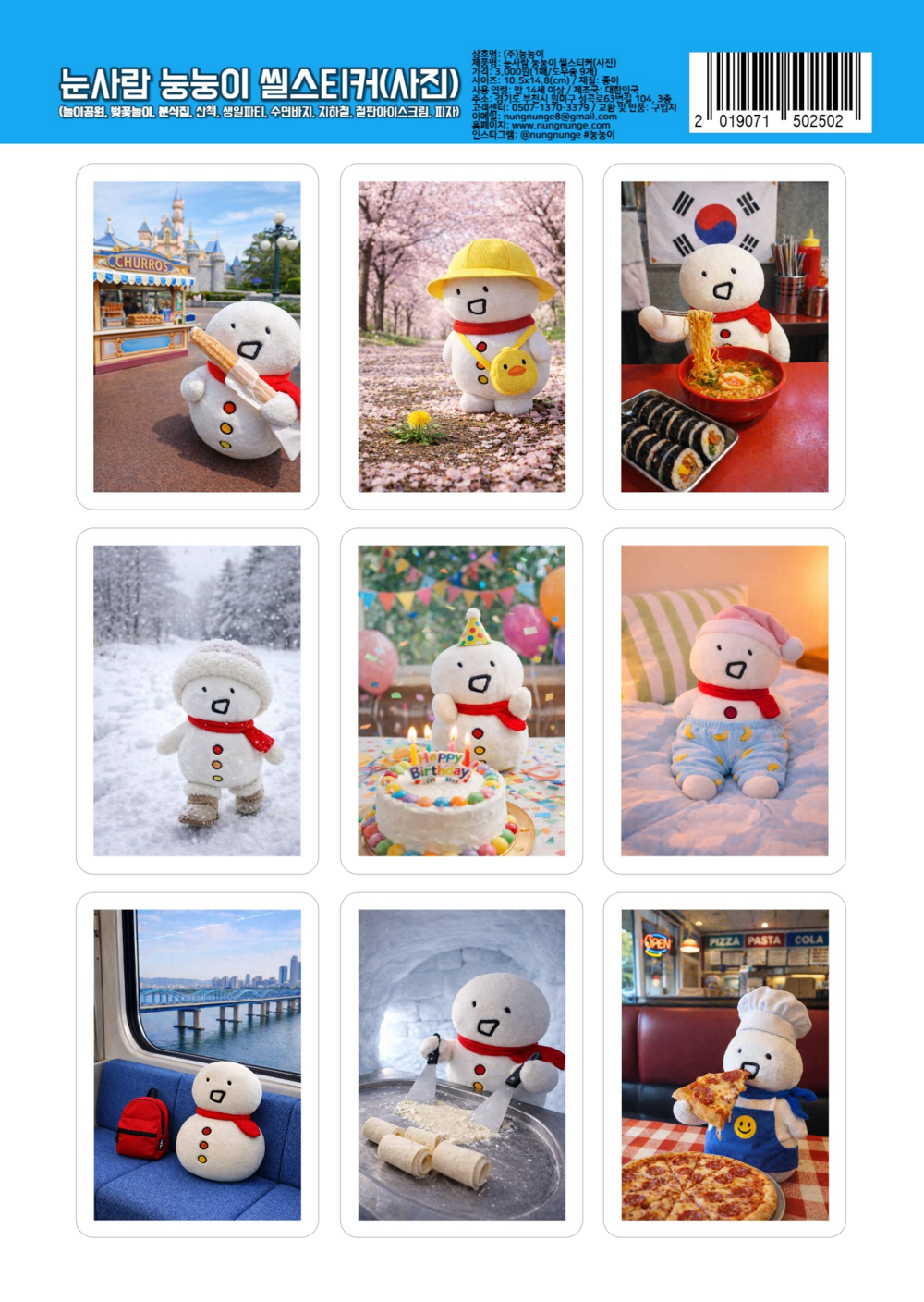 눈사람 눙눙이 씰스티커(사진)